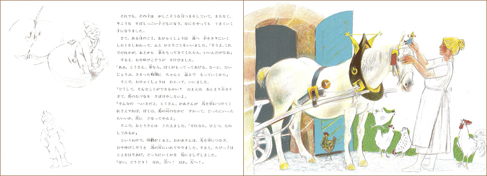 むかし、おやゆび程の背たけの男の子がお百姓の家に生まれました。お百姓の夫婦はその男の子に「おやゆびこぞう」と名づけ、大切に育てました。男の子はたいへんかしこく成長しました。ある日、おやゆびこぞうを見せ物にして金儲けを企む男たちがお父さんにおやゆびこぞうを売ってくれないかともちかけました。お父さんはもちろん断りましたが、おやゆびこぞうは「必ず帰ってくるから」とお父さんに耳打ちし、男たちに自ら売られていきました。 男たちからうまく逃げ出したおやゆびこぞうは、その後 どろぼうに出会ってその悪事を台無しにしたり、干草と一緒に牛に飲み込まれたり、おおかみの腹に入ったり・・・様々な困難に出会いますが・・・。