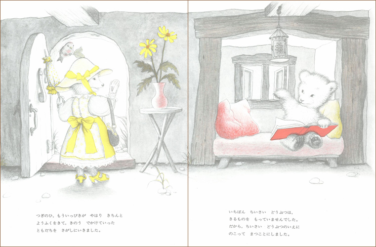 森の奥の小さな暖かい家に、3びきの小さい動物が仲良く暮らしていました。丘のむこうに見える人間の世界へ行ってみたくなり、ある日、洋服を着て、くつをはき、帽子をかぶって出かけていきました。人間たちに紛れ込んでいましたが ある日、3びきは風に帽子をふきとばされ、「ぼくたち」を発見します。そして3びきでてをとり、自分たちの本当の居場所へ向け、かけだします!